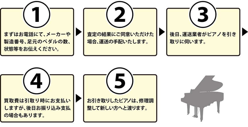 ※ピアノによっては、お引取り・お買取り出来ない場合がございます。予めご了承下さい。